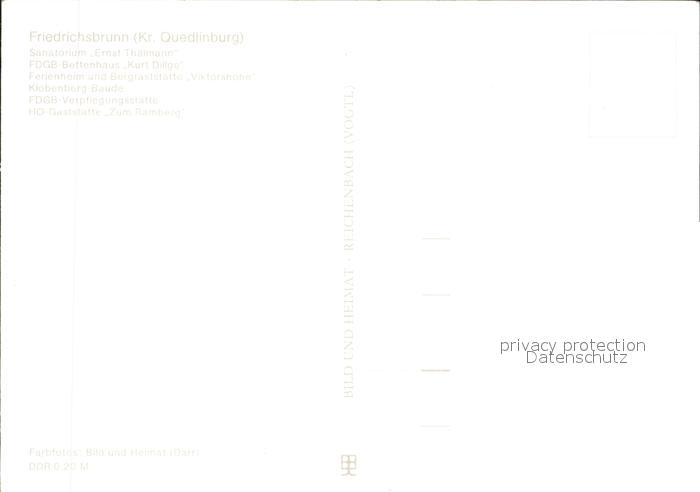 72037861 Friedrichsbrunn Harz Sanatorium Thaelmann Bettenhaus Kurt Dillge Ferienheim Viktorshoehe Klobenberg Baude HO Gaststaette Zum Ramberg postalisch nicht gelaufen Erhaltung siehe scans KatCode: 11110015085115