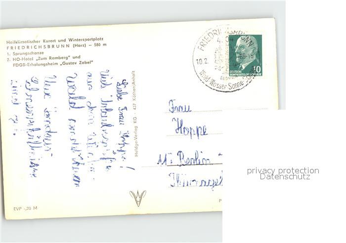 72005547 alte Postkarte Friedrichsbrunn Harz Sprungschanze HO Hotel zum Ramberg FDGB Erholungheim Gustav Zabel postalisch gelaufen Erhaltung siehe scans KatCode: 11110015085115