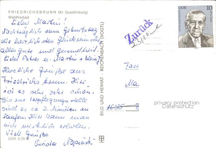 72008166 alte Postkarte Friedrichsbrunn Harz Waldfreibad postalisch gelaufen Erhaltung siehe scans KatCode: 11110015085115