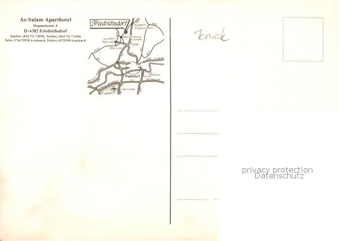 73081976 Friedrichsdorf Taunus As Salam Aparthotel postalisch nicht gelaufen Erhaltung siehe scans [FriedD77] KatCode: 11110006434002