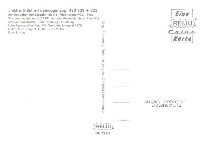73231486 Friedrichsdorf Taunus Elektro-S-Bahn-T postalisch nicht gelaufen Erhaltung siehe scans [NatalD47] KatCode: 11110006434002