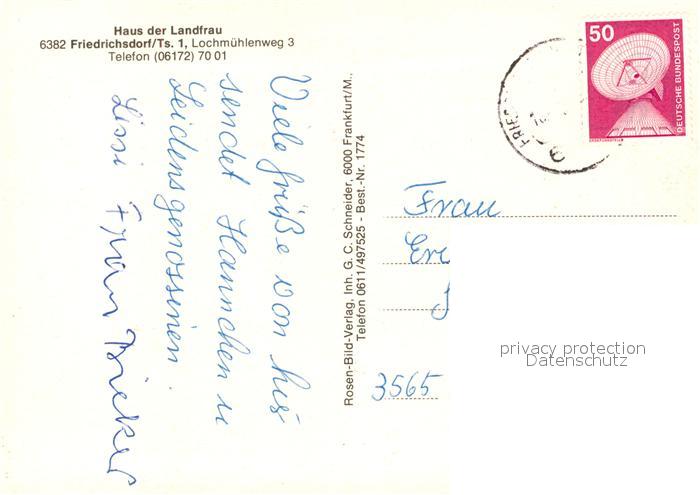 73254802 alte Postkarte Friedrichsdorf Taunus Haus der Landfrau postalisch gelaufen Erhaltung siehe scans [FriedD77] KatCode: 11110006434002