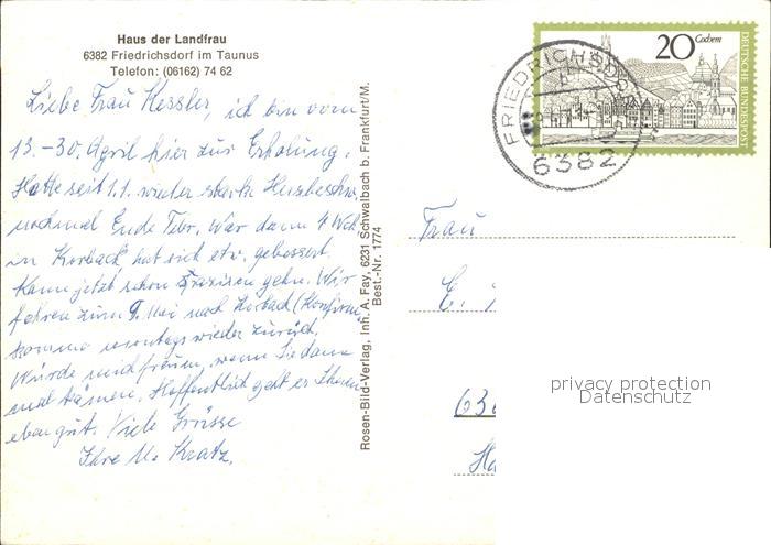 71988012 alte Postkarte Friedrichsdorf Taunus Haus der Landfrau postalisch gelaufen Erhaltung siehe scans KatCode: 11110006434002
