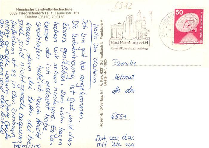 73889047 alte Postkarte Friedrichsdorf Taunus Hessische Landvolkshochschule postalisch gelaufen Erhaltung siehe scans [WerneD78] KatCode: 11110006434002