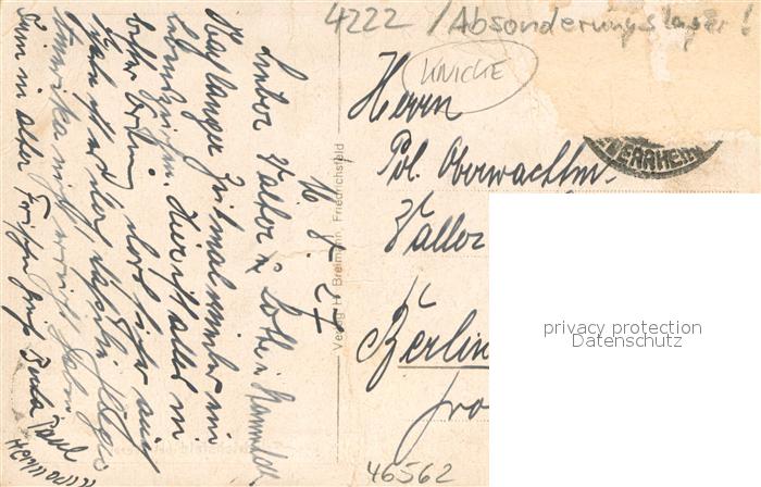 73754342 alte Postkarte Friedrichsfeld Wesel Absonderungslager Strasse Park m. Denkmal postalisch gelaufen Erhaltung siehe scans [LiesaD40] KatCode: 11110005170044