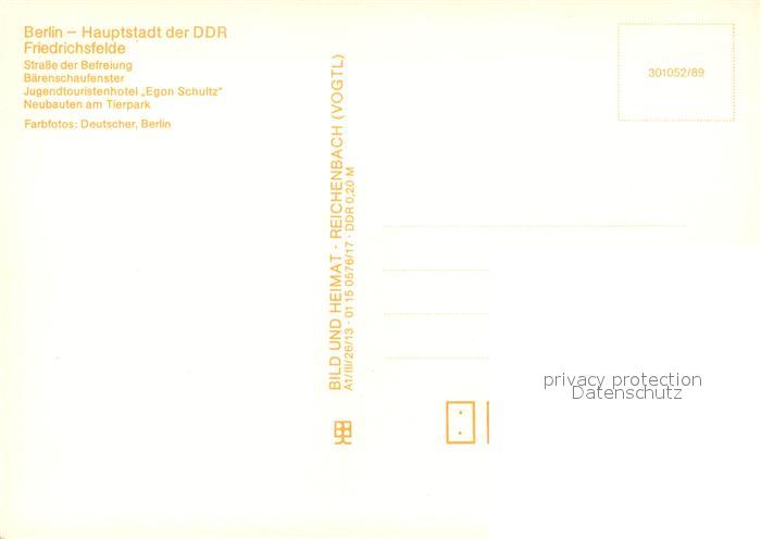 73081193 Friedrichsfelde Berlin Strasse der Befreiung Baerenschaufenster Jugendtouristenhotel Neubauten am Tierpark postalisch nicht gelaufen Erhaltung siehe scans [FriedD77] KatCode: 11110011000000
