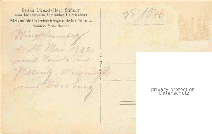 74057317 Friedrichsgrund Pillnitz Dresden Sachsen Bertha Menzel Horn Stiftung Meixmuehle postalisch nicht gelaufen Erhaltung siehe scans [WerneD78] KatCode: 11110014262000