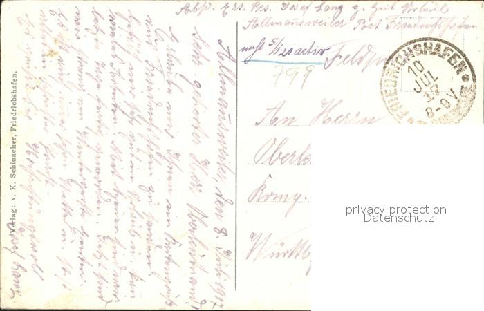 31722849 alte Postkarte Friedrichshafen Bodensee postalisch gelaufen Feldpost Erhaltung siehe scans KatCode: 11110008435016