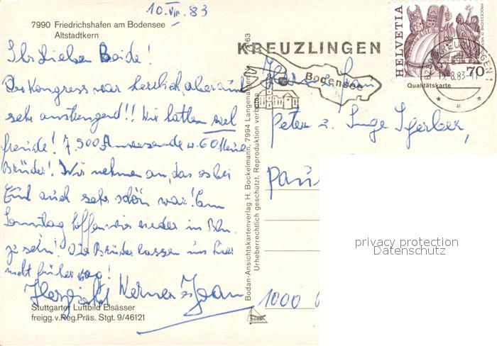73719220 alte Postkarte Friedrichshafen Bodensee Altstadtkern Fliegeraufnahme postalisch gelaufen Erhaltung siehe scans [WerneD78] KatCode: 11110008435016