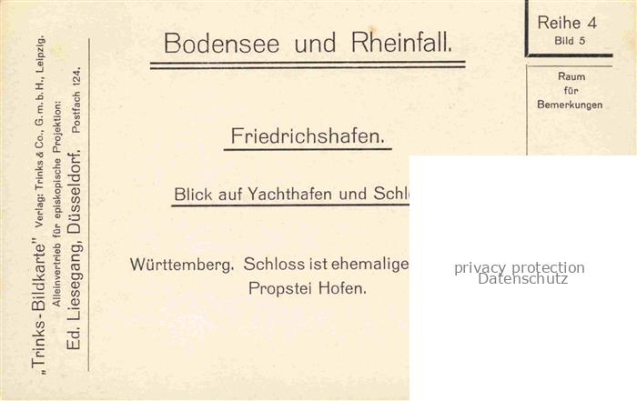 74121978 FRIEDRICHSHAFEN Bodensee Blick auf Yachthafen und Schloss Segelboot Trinks-Bildkarte Serie Bodensee und Rheinfall Reihe 4 Bild 5 postalisch nicht gelaufen Keine Postkarte (siehe scan) Erhaltung siehe scans [FriedD77] Keine Postkarte (siehe scan) Frie Katcode 11110008435016