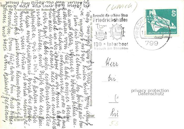 74148774 alte Postkarte FRIEDRICHSHAFEN Bodensee BW Stadtpanorama Hafen postalisch gelaufen Fliegeraufnahme Erhaltung siehe scans [FriedD77] KatCode: 11110008435016