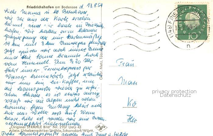 73762829 alte Postkarte Friedrichshafen Bodensee Fliegeraufnahme postalisch gelaufen Erhaltung siehe scans [LiesaD40] KatCode: 11110008435016
