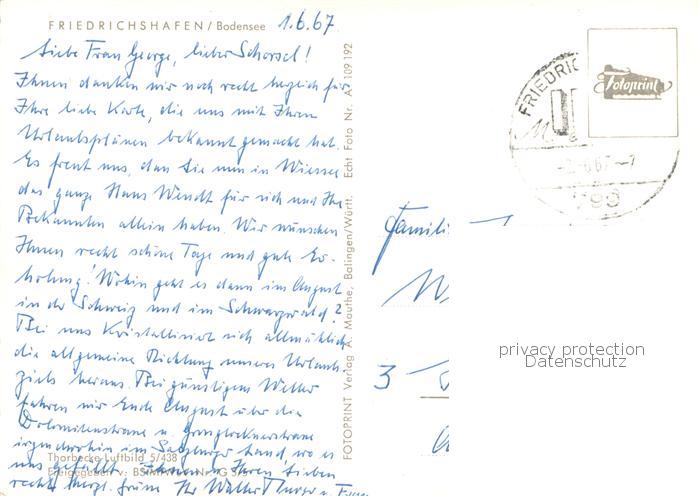 73761102 alte Postkarte Friedrichshafen Bodensee Fliegeraufnahme postalisch gelaufen Erhaltung siehe scans [WerneD78] KatCode: 11110008435016