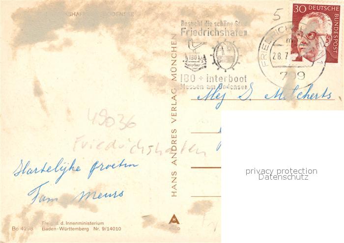 73056877 alte Postkarte Friedrichshafen Bodensee Fliegeraufnahme postalisch gelaufen Erhaltung siehe scans [WerneD78] KatCode: 11110008435016