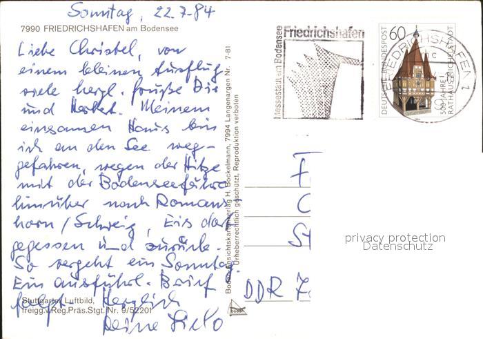 71900161 alte Postkarte Friedrichshafen Bodensee Fliegeraufnahme postalisch gelaufen Erhaltung siehe scans KatCode: 11110008435016