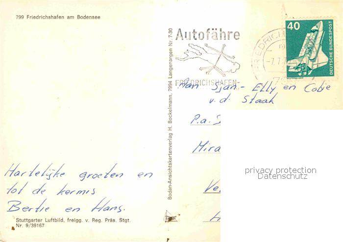 72864945 alte Postkarte Friedrichshafen Bodensee Fliegeraufnahme Hafenpartie postalisch gelaufen Erhaltung siehe scans [LiesaD40] KatCode: 11110008435016
