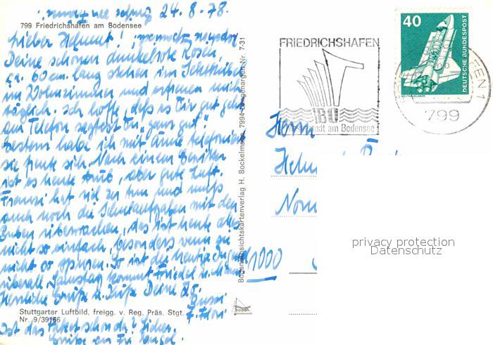 72793080 alte Postkarte Friedrichshafen Bodensee Fliegeraufnahme mit Hafen postalisch gelaufen Erhaltung siehe scans [LiesaD40] KatCode: 11110008435016