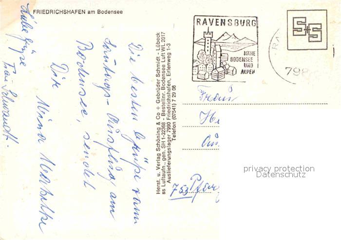 72727731 alte Postkarte Friedrichshafen Bodensee Fliegeraufnahme Seepartie Hafen postalisch gelaufen Erhaltung siehe scans [LiesaD40] KatCode: 11110008435016