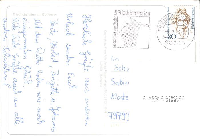 72062397 alte Postkarte Friedrichshafen Bodensee Fliegeraufnahme Yachthafen Graf Zeppelin Haus und Schlosskirche postalisch gelaufen Erhaltung siehe scans KatCode: 11110008435016