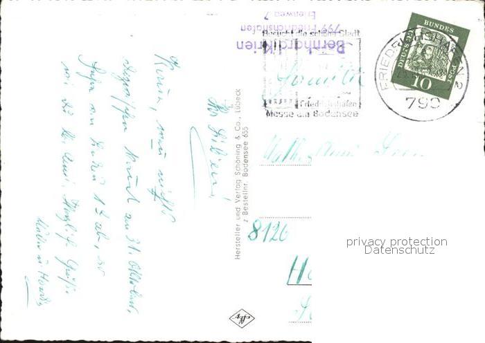 72534028 alte Postkarte Friedrichshafen Bodensee Hafen Blick zur Schlosskirche Gedicht postalisch gelaufen Erhaltung siehe scans [FriedD77 kt118box] KatCode: 11110008435016