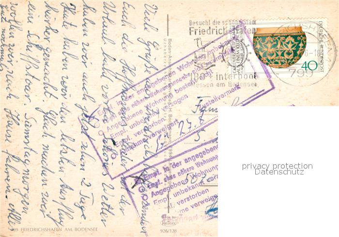 73017673 alte Postkarte Friedrichshafen Bodensee Hafenbahnhof Yachthafen und Schlosskirche Faehrhafen Nikolauskirche postalisch gelaufen Erhaltung siehe scans [WerneD78] KatCode: 11110008435016
