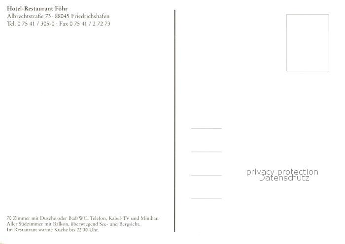 73763442 Friedrichshafen Bodensee Hotel-Restaurant Foehr postalisch nicht gelaufen Erhaltung siehe scans [LiesaD40] KatCode: 11110008435016