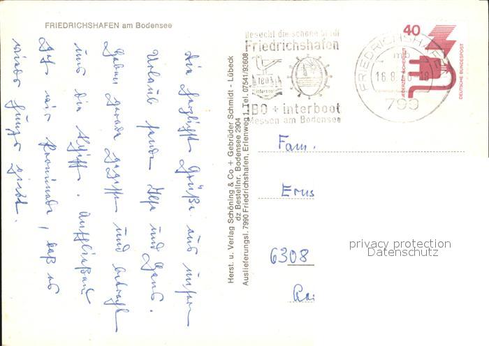 72397678 alte Postkarte Friedrichshafen Bodensee Kirche Faehre Fliegeraufnahme postalisch gelaufen Erhaltung siehe scans KatCode: 11110008435016