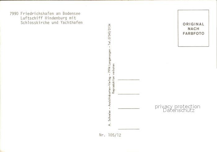 72448682 Friedrichshafen Bodensee Luftschiff Hindenburg mit Schlosskirche und Yachthafen postalisch nicht gelaufen Erhaltung siehe scans KatCode: 11110008435016