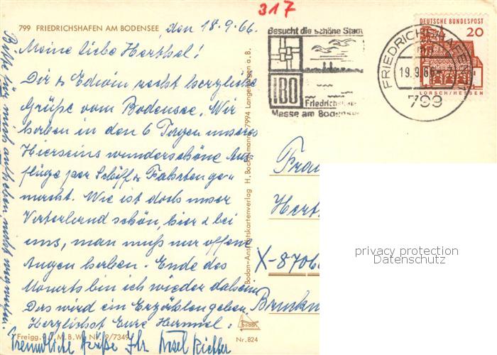 73755557 alte Postkarte Friedrichshafen Bodensee Panorama Alpenkette postalisch gelaufen Fliegeraufnahme Erhaltung siehe scans [FriedD77] KatCode: 11110008435016