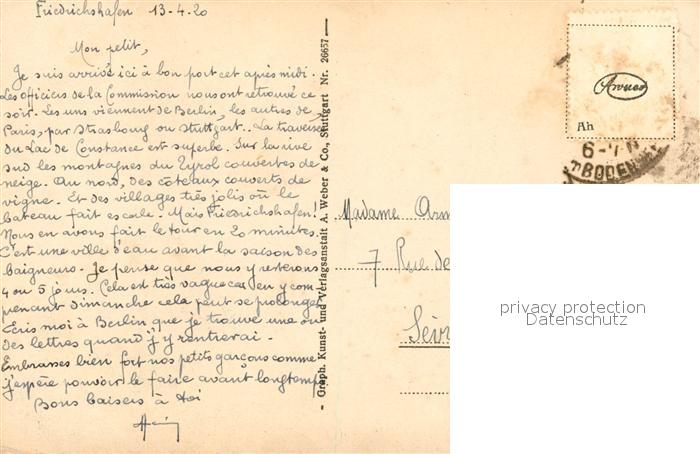 43509332 alte Postkarte Friedrichshafen Bodensee Rathaus Stadtkirche postalisch gelaufen Erhaltung siehe scans [LiesaD40] KatCode: 11110008435016