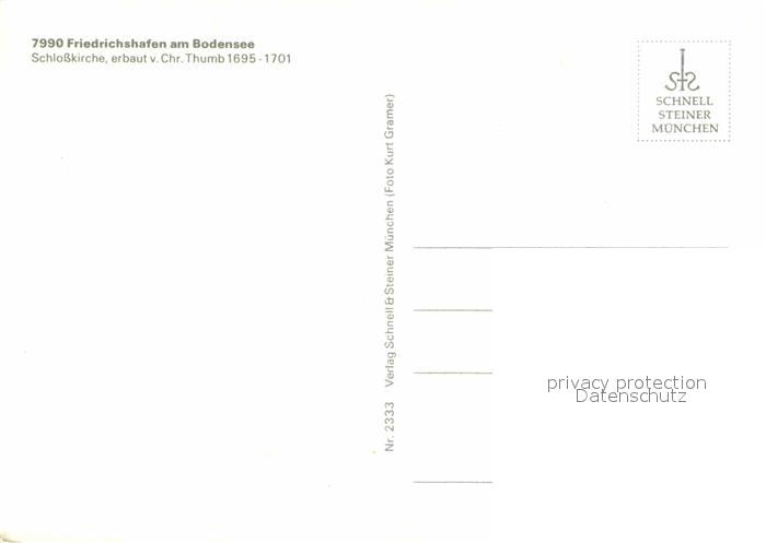 72914951 Friedrichshafen Bodensee Schlosskirche Erbauer Chr Thumb 17. Jhdt. Innenansicht postalisch nicht gelaufen Erhaltung siehe scans [FriedD77] KatCode: 11110008435016