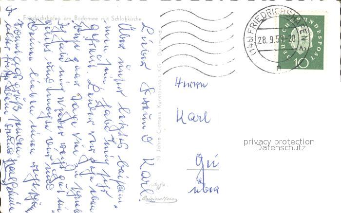 72291438 alte Postkarte Friedrichshafen Bodensee Schlosskirche Fliegeraufnahme postalisch gelaufen Erhaltung siehe scans KatCode: 11110008435016