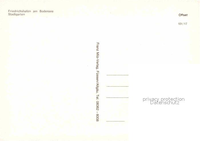 72807606 Friedrichshafen Bodensee Stadtgarten Uferpromenade postalisch nicht gelaufen Erhaltung siehe scans [FriedD77] KatCode: 11110008435016