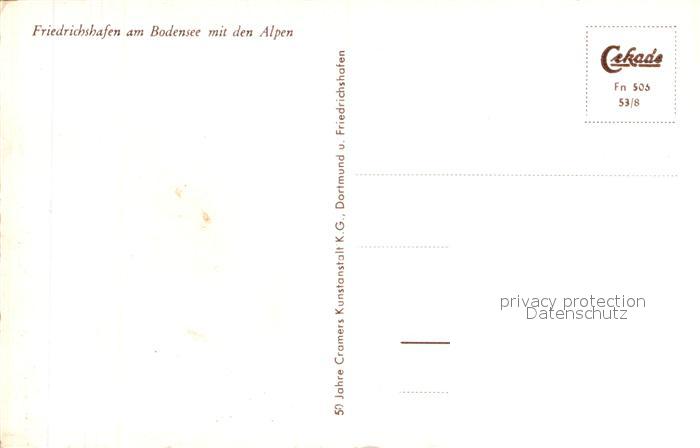 72955902 Friedrichshafen Bodensee Stadtpanorama mit Alpen postalisch nicht gelaufen Erhaltung siehe scans [FriedD77] KatCode: 11110008435016