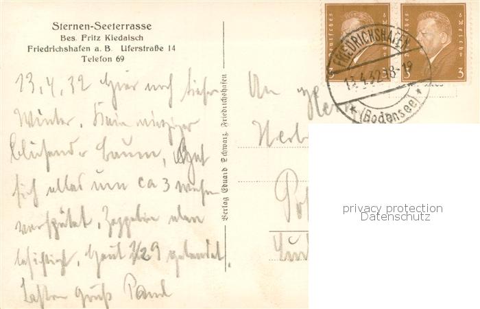 73780210 alte Postkarte Friedrichshafen Bodensee Sternen Seeterrasse postalisch gelaufen Erhaltung siehe scans [WerneD78] KatCode: 11110008435016