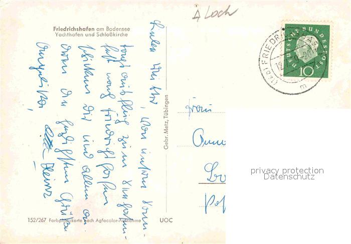 72763678 alte Postkarte Friedrichshafen Bodensee Yachthafen Schlosskirche postalisch gelaufen Erhaltung siehe scans [AndreD76] KatCode: 11110008435016