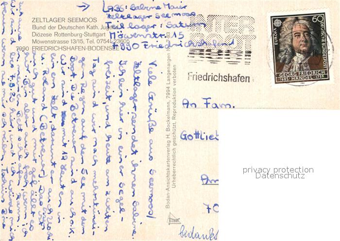 73011203 alte Postkarte Friedrichshafen Bodensee Zeltlager Seemoos Fliegeraufnahme postalisch gelaufen Erhaltung siehe scans [WerneD78] KatCode: 11110008435016