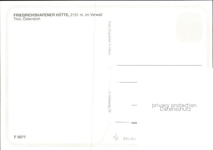 72395630 Friedrichshafener Huette Schafbueheljoch Muttenjoch Verwalkar See postalisch nicht gelaufen Erhaltung siehe scans KatCode: 11390