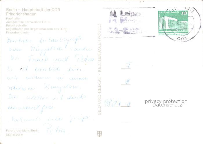 72156536 alte Postkarte Friedrichshagen Berlin Kaufhalle Anlegestelle Weisse Flotte Boelschestr Seglerhafen Feierabendheim postalisch gelaufen Erhaltung siehe scans KatCode: 11110011000000