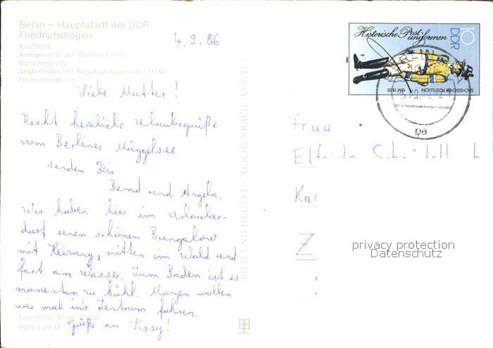 72066315 alte Postkarte Friedrichshagen Berlin Kaufhalle Anlegestelle Weisse Flotte Bolschestrasse Seglerhafen Feierabendheim postalisch gelaufen KatCode: 11110011000000