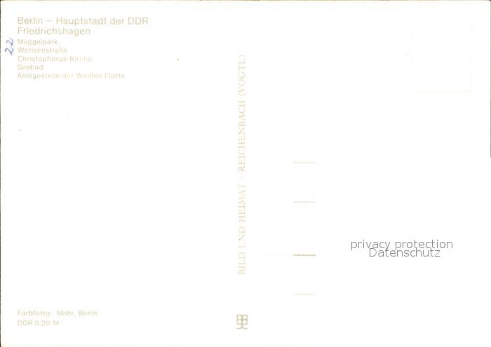 72528514 Friedrichshagen Berlin Mueggelpark Werlseestrasse Christophorus Kirche Seebad Anlegestelle Weisse Flotte postalisch nicht gelaufen Erhaltung siehe scans KatCode: 11110011000000