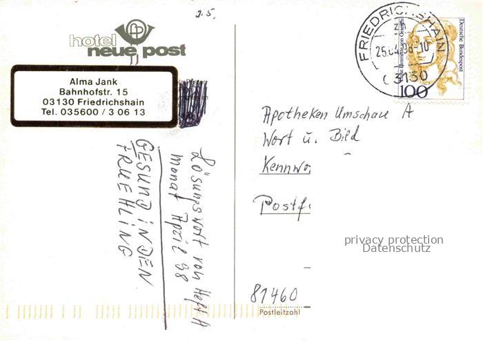74040567 alte Postkarte Friedrichshain Felixsee Hotel Neue Post im Winter postalisch gelaufen Erhaltung siehe scans [FriedD77] KatCode: 11110012071074
