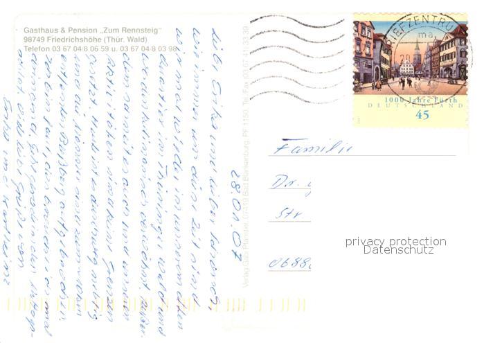 73614209 alte Postkarte Friedrichshoehe Neuhaus Rennweg Gasthaus Pension Zum Rennsteig postalisch gelaufen Erhaltung siehe scans [WerneD78] KatCode: 11110016072013