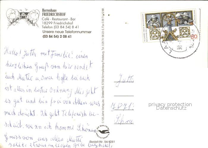 72419449 alte Postkarte Friedrichshof Dolgen See Herrenhaus Friedrichshof Cafe Restaurant Bar Fliegeraufnahme postalisch gelaufen Erhaltung siehe scans KatCode: 11110013053103
