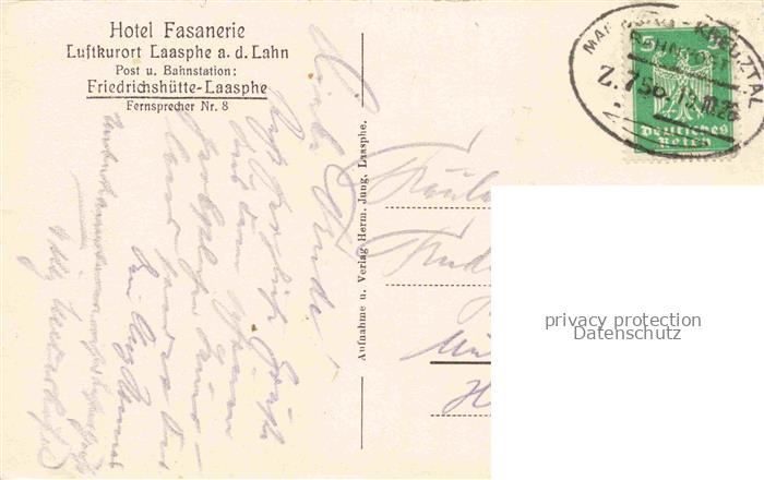 74055258 alte Postkarte Friedrichshuette Bad Laasphe Hotel Fasanerie Panorama Blick vom Buhl postalisch gelaufen Bahnpost Erhaltung siehe scans [FriedD77] KatCode: 11110005970028
