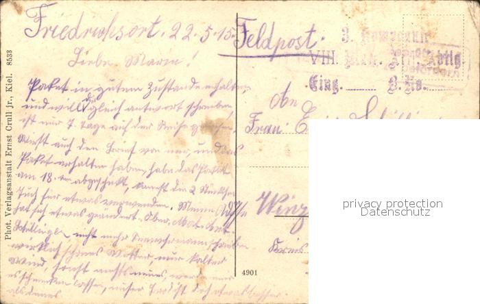 31713977 alte Postkarte Friedrichsort Kaserne Anlegebruecke postalisch gelaufen Feldpost Erhaltung siehe scans KatCode: 11110001002000