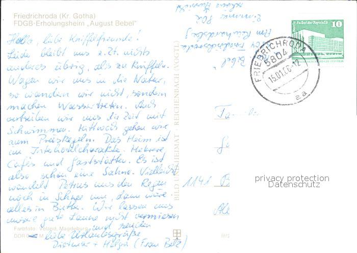 72263617 alte Postkarte Friedrichsroda Erholungsheim August Bebel postalisch gelaufen Erhaltung siehe scans KatCode: 11110016067029