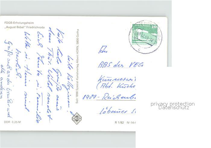 71964157 alte Postkarte Friedrichsroda Erholungsheim August Bebel postalisch gelaufen Erhaltung siehe scans KatCode: 11110016067029