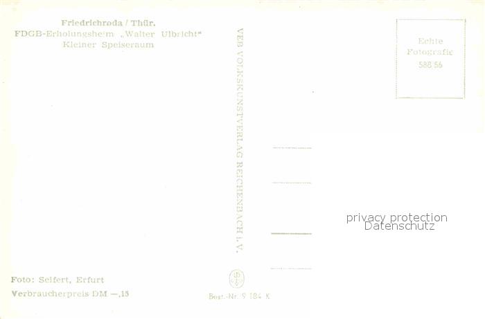 72827289 Friedrichsroda FDGB Erholungsheim Walter Ulbricht Speiseraum postalisch nicht gelaufen Erhaltung siehe scans [LiesaD40] KatCode: 11110016067029
