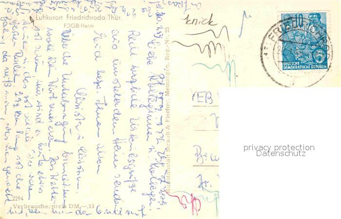 72827334 alte Postkarte Friedrichsroda FDGB-Heim postalisch gelaufen Erhaltung siehe scans [LiesaD40] KatCode: 11110016067029